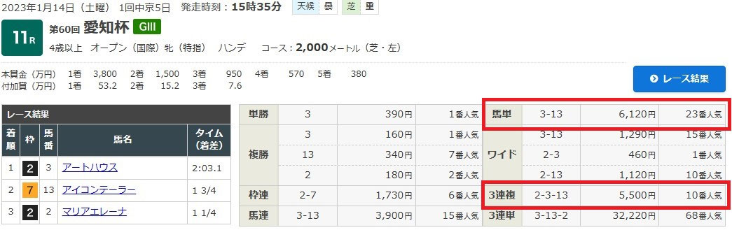 美味しい配当を期待しつつ、「愛知杯」のレース結果はというと…