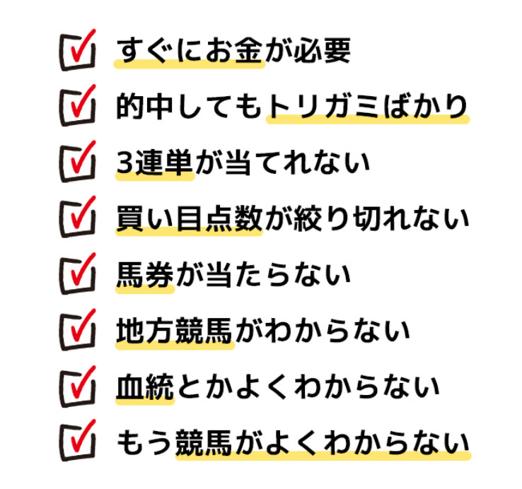 競馬民にあるあるの悩みなのですが、これらのお悩みを抱えている方はお任せくださいだそうですね。