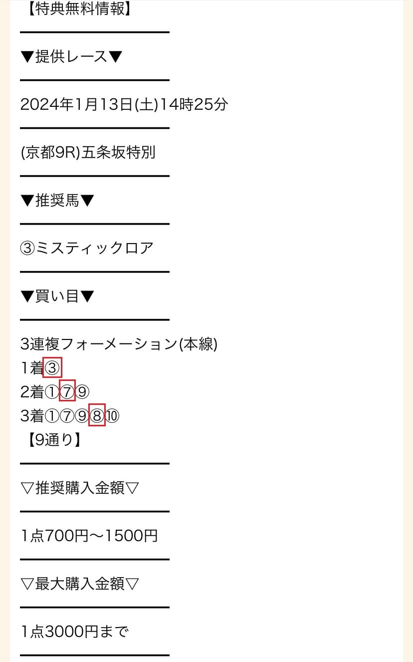 13日(土)京都9Rで無料情報的中で12万5100円獲得!