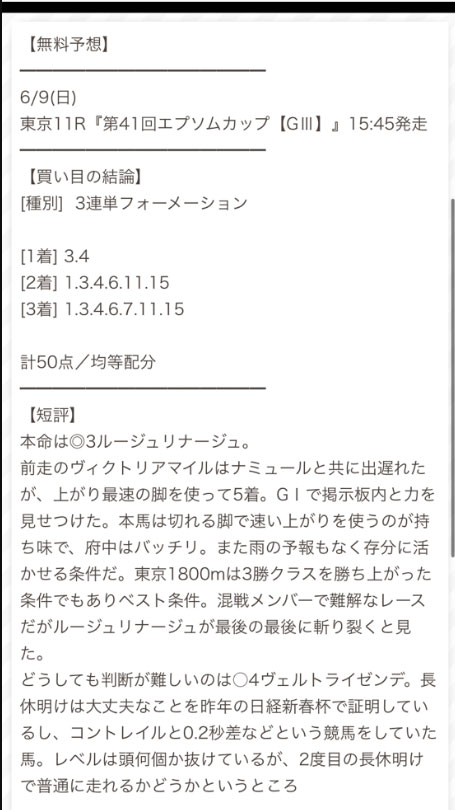 そして馬券の点数は50点と土曜日の予想より10点も多くなりました。