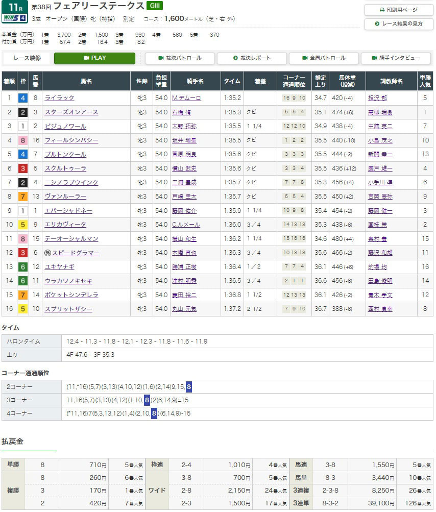 【検証レース:1/10 フェアリーステークス】
