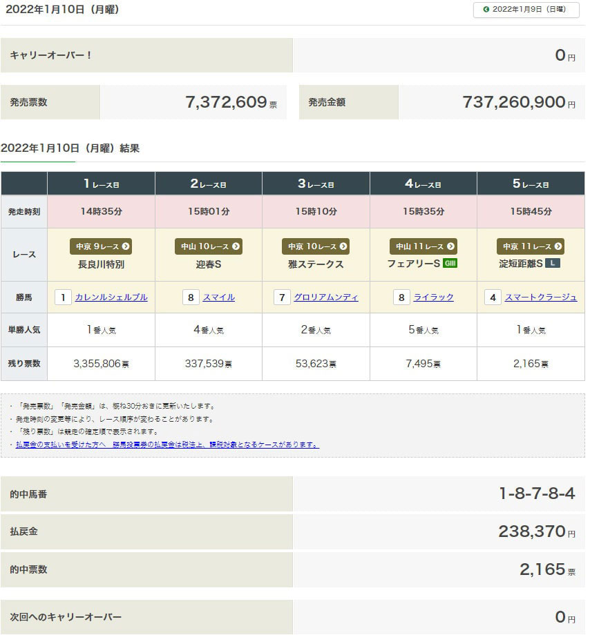 【検証レース:1/10 WIN5】