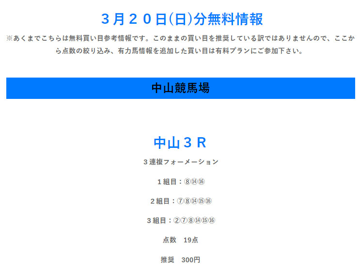無料情報ではあるが2戦で的中なし!