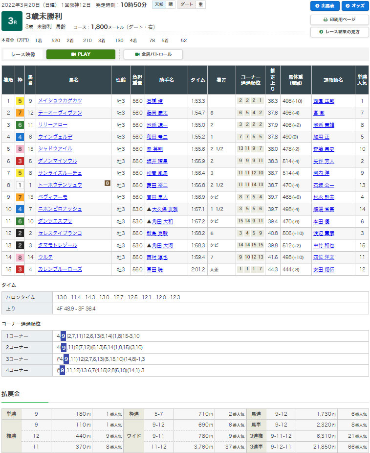 【検証レース①:3/20 中山3R 3歳未勝利】