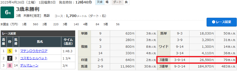 4月26日の福島中央競馬の6Rの無料予想