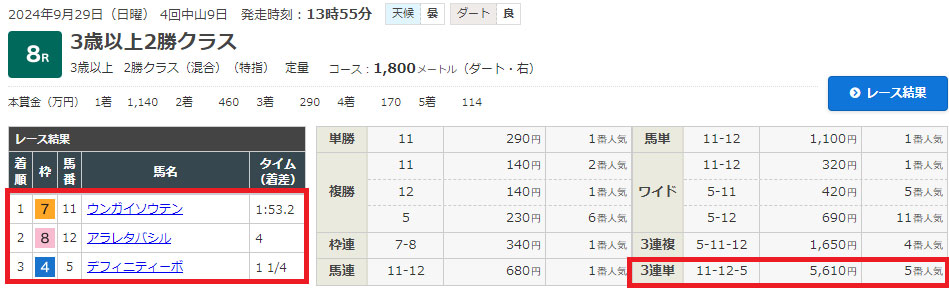 3連複よりいい金額を当てることが出来て気分がいいですね。