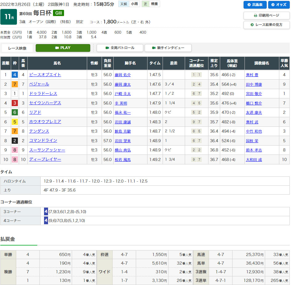 【検証レース:3/26 阪神11R GⅢ 毎日杯】