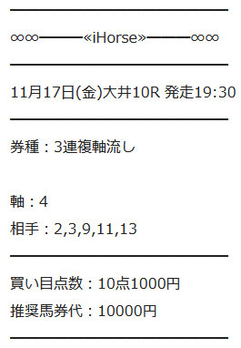11月17日(金)大井10Rの三連複軸流し10点の予想