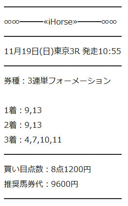 今回は【iHorse】の無料情報2レースと有料情報1レース検証しましたが、