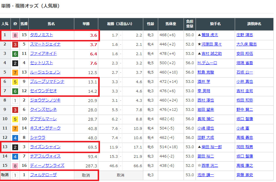 2~5番人気の比較的人気馬をごっそり切っているのが気になります。