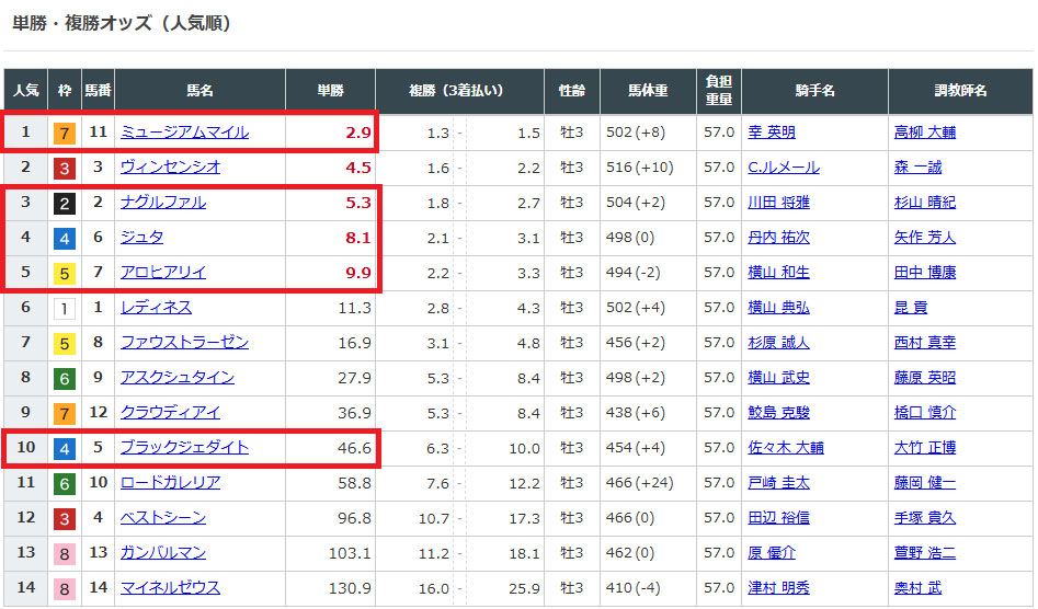 上位人気ではあるのですが、穴目の馬も選ばれているのでほっとしました(笑)