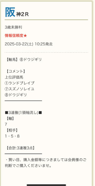 気を取り直して、次の日の日曜日に公開されていた買い目がこちらになります。