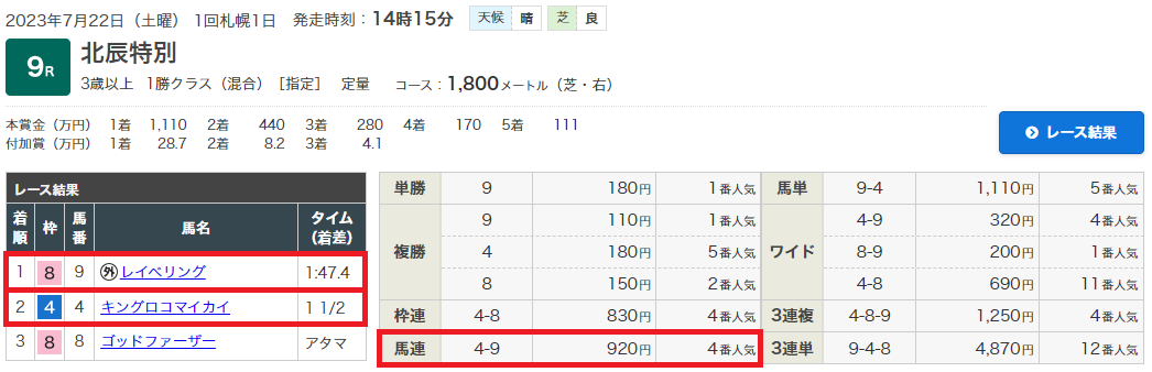 7月22日・札幌10レース ライラック賞 3歳以上2勝クラス 芝2000m