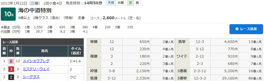 余談ですが、この「海の中道特別」はアイドルホース「メロディーレーン」が2021年に勝ったレースになりますね。