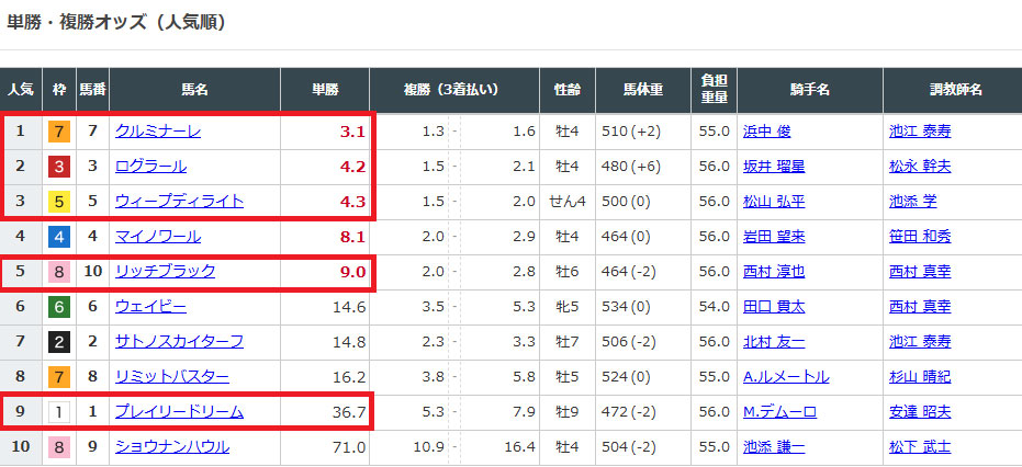 10頭なので比較的頭数が少ないレースを選びましたね。