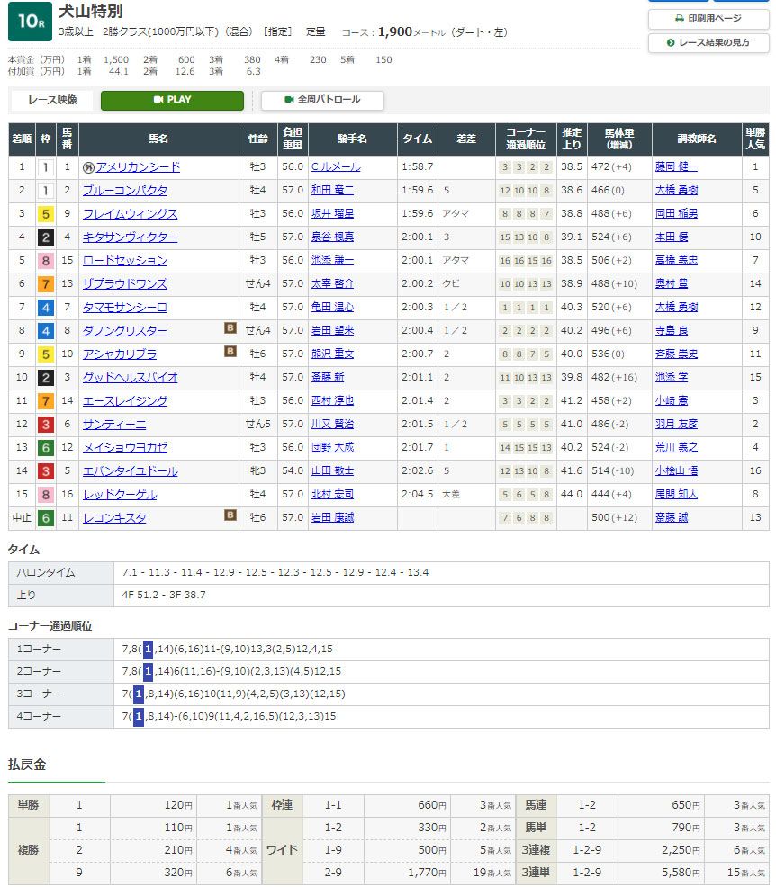 単勝1.2倍と200円勝ち、合計1万円の馬券代を使い、払い戻しで戻ってきた金額は1100円だけ。