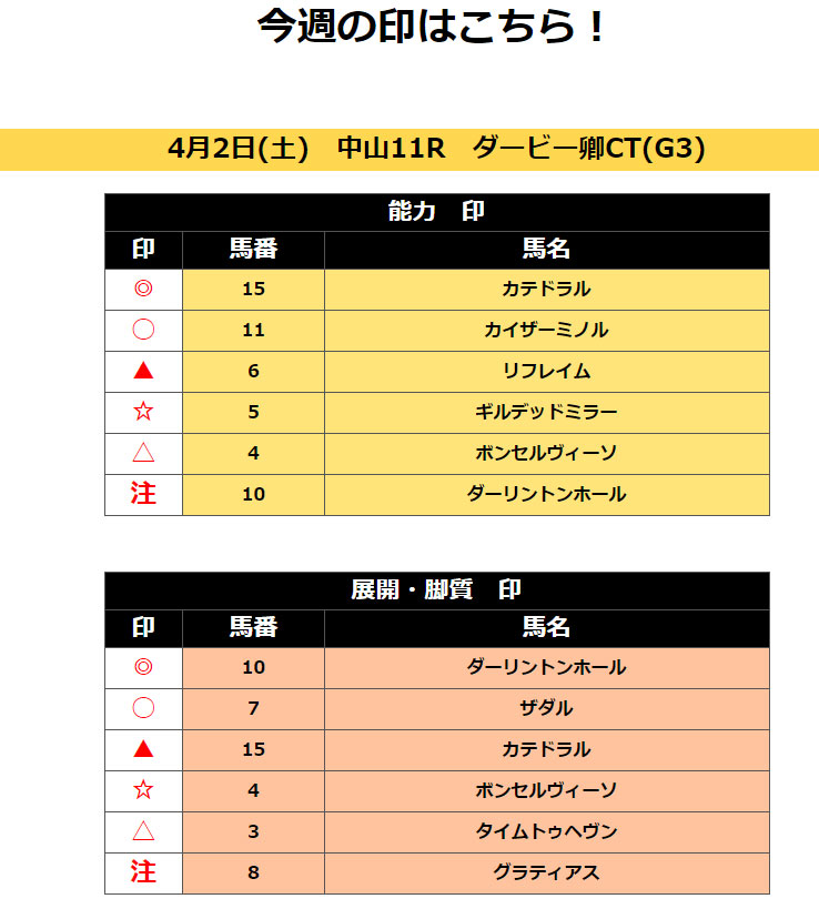 【検証レース:4/2 中山11R G3 ダービー卿CT】