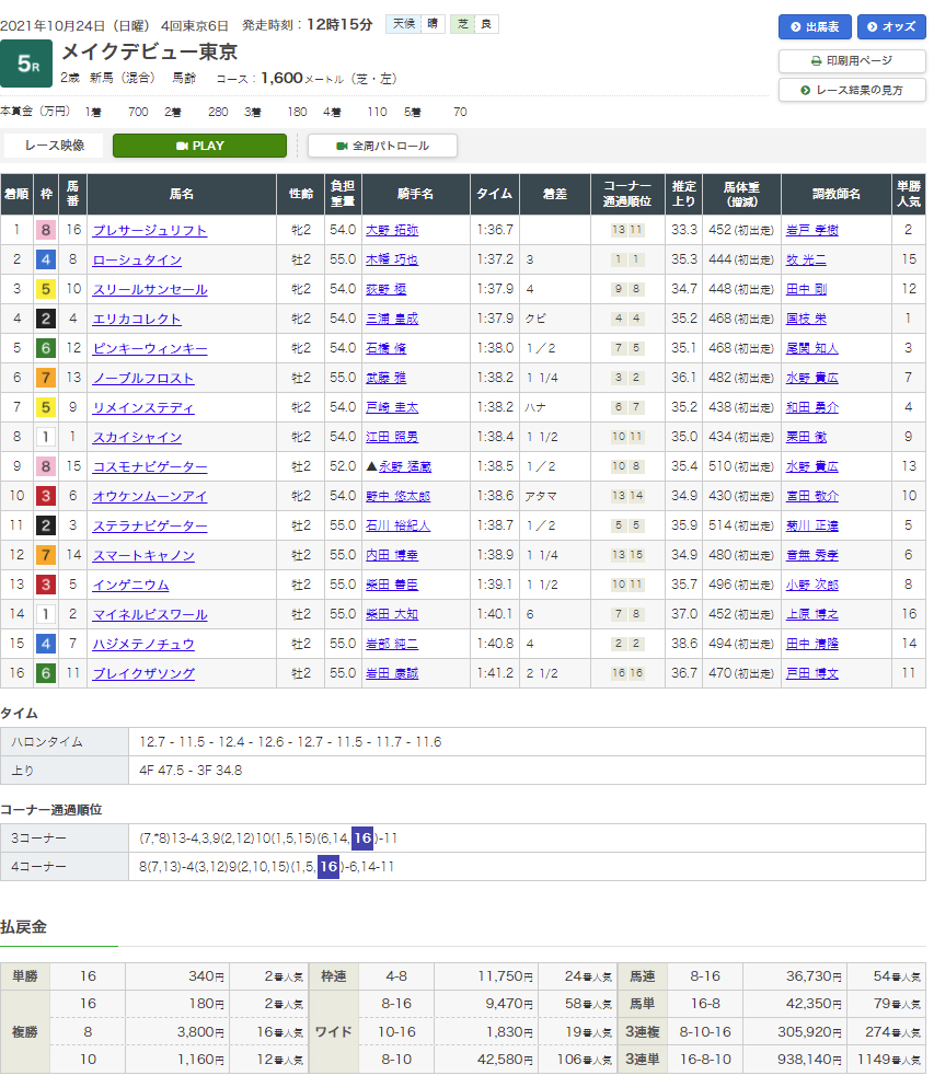 このレースに関して結論から言いますと2着・3着が混戦して3連単払戻93万馬券、3連複でも30万馬券越えと当たればでかいレースではありましたが、軸の2番人気プレサージュリフトの追い込みしか当たっておりませんでした。