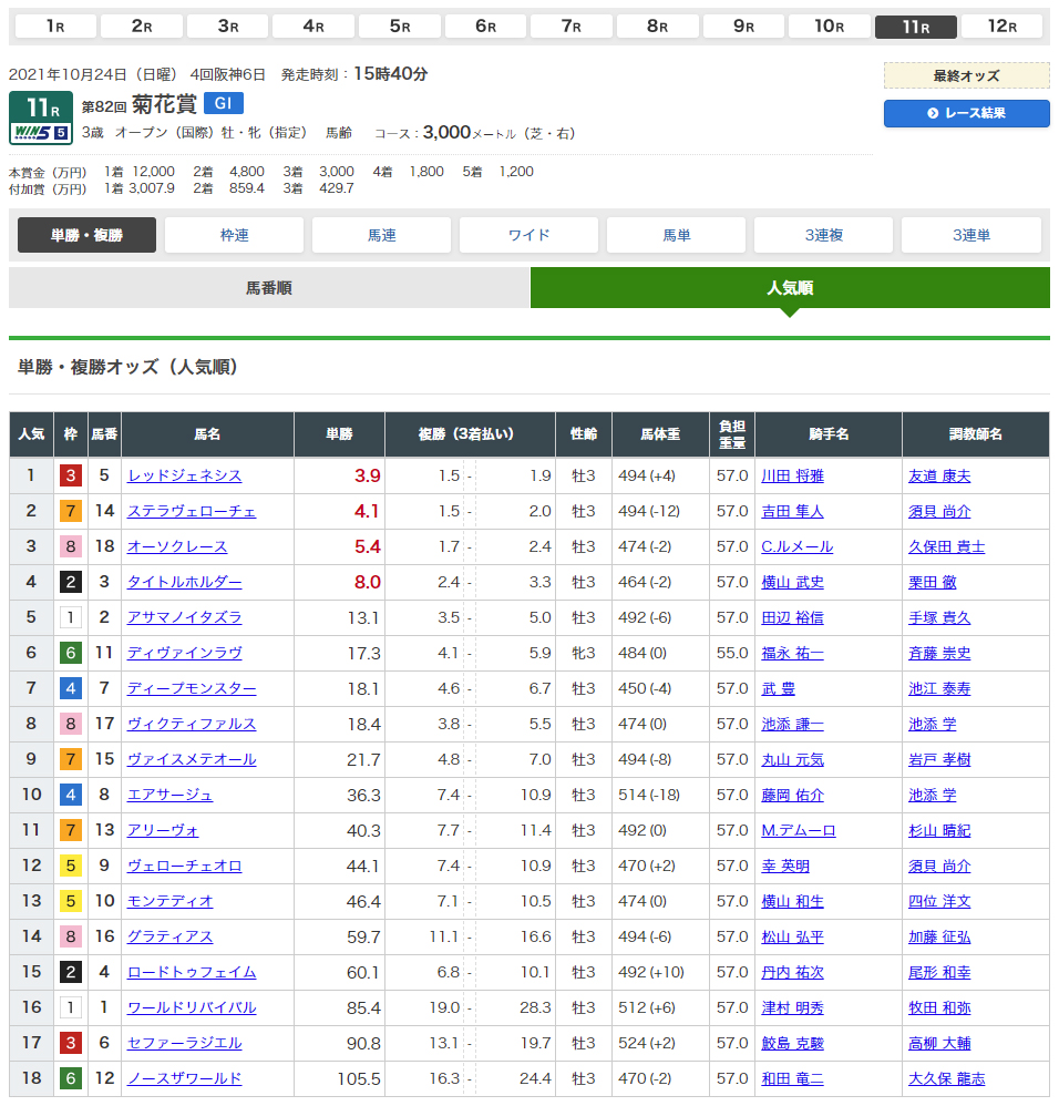 続くレースはお知らせで届いた重賞プレゼント買い目、この日のメインでもありクラシック最終戦『菊花賞』予想だ!