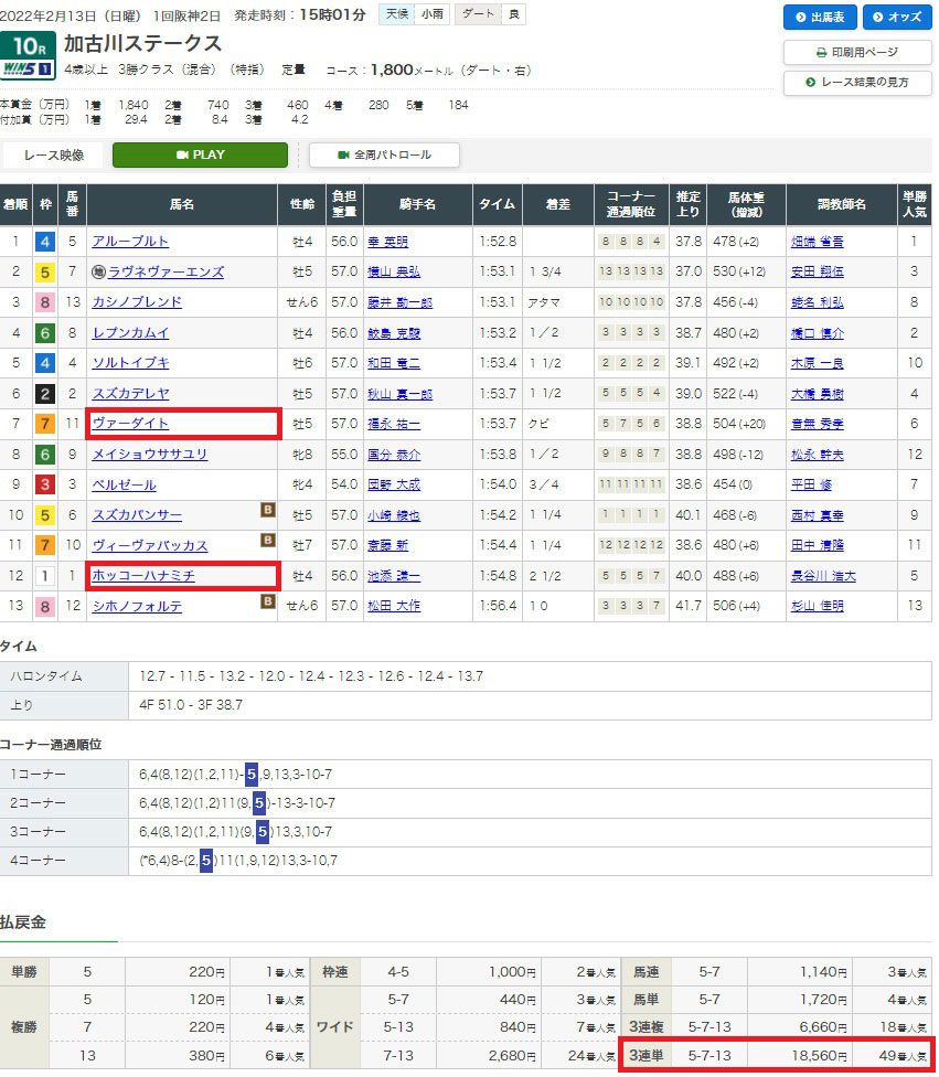 【検証レース:2/13(日) 阪神10R 加古川ステークス】