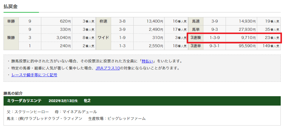 あと一歩で万馬券となるレースで9万7100円獲得成功!