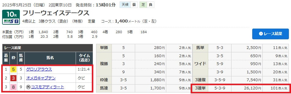 軸の⑤は4着でした。