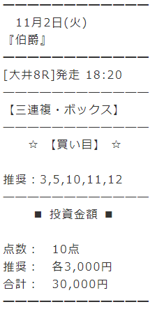 昨日11//2のナイター予想で18万稼がせてもらいました。
