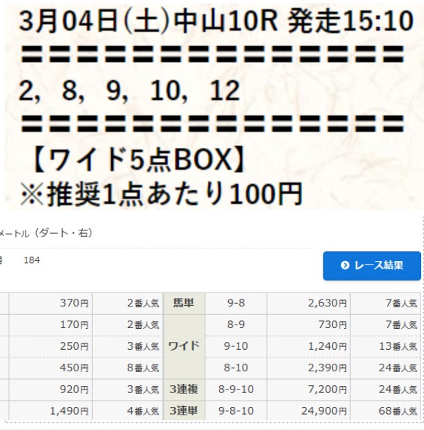 ワイド3頭とも選んでて4,360円もらえた🙌