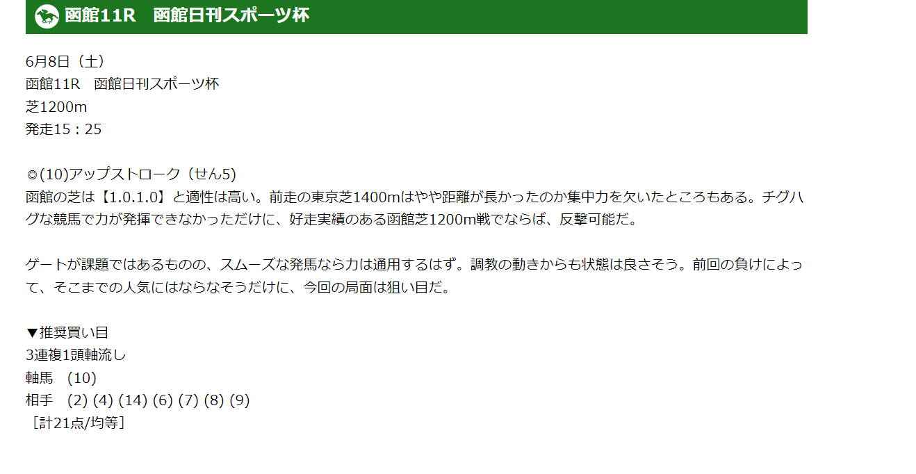 この無料情報で函館連敗しました