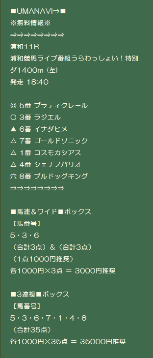 UMANAVI今開催の船橋好調っスね!