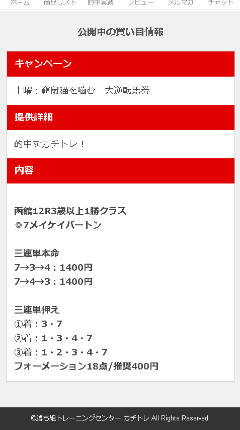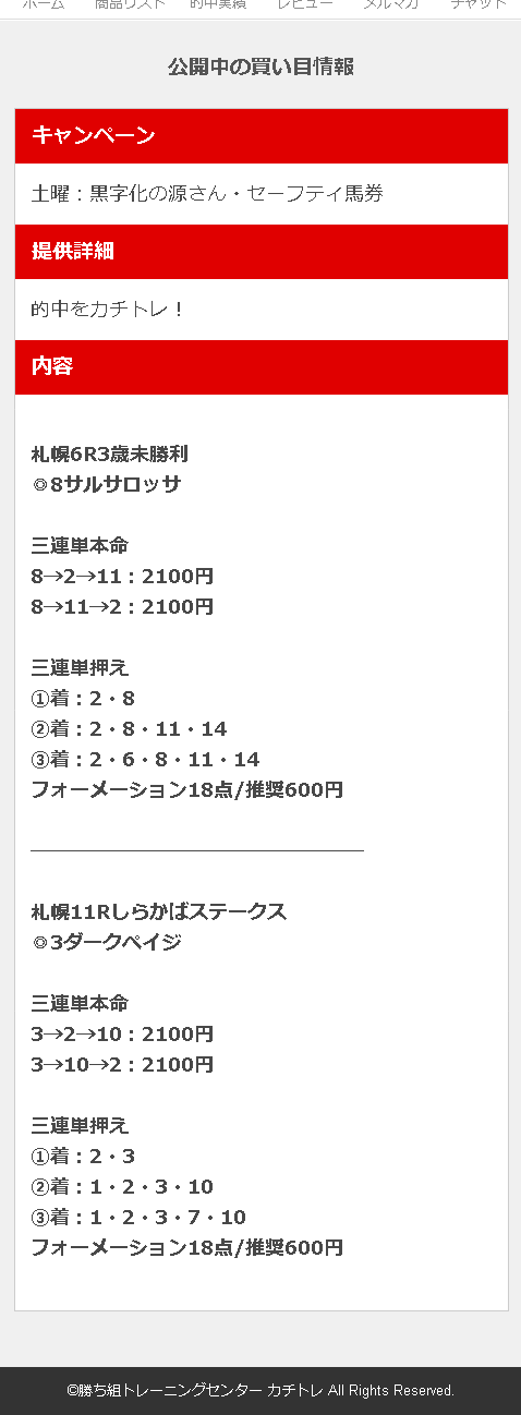 2レースとも本命がどんぴしゃで凄いと思った。良いサイトじゃないと得られない情報だと思う。