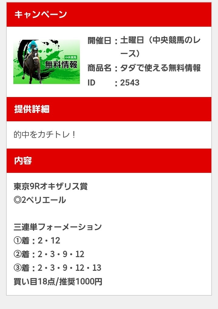 源さんのおかげでこの土日の負け取り返せた!! もう6Rで当たったから11Rは辞めといたんだけど正解だった! ありがとう!また勝ち組にさせてもらいたいときはお世話になります!