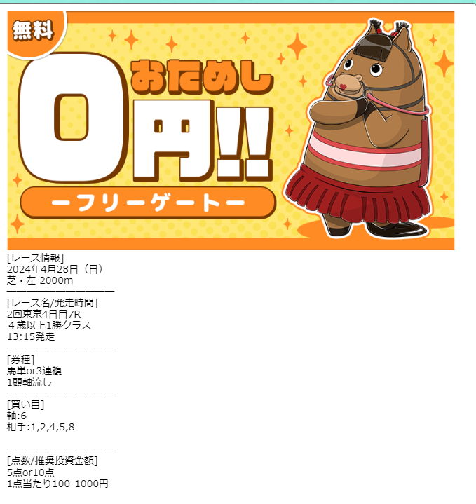 ここは駄目だ。今まで3回参加し、全敗、他の情報は的中実績すべて的中になっている。嘘だろうな。悪質評価が多いのは嘘でなかった。