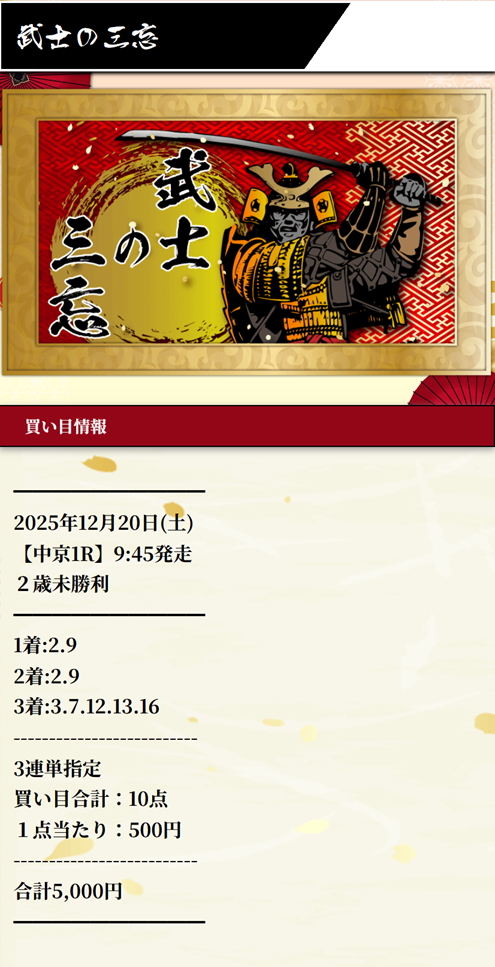 俺が口コミ1番乗り!先週の無料予想で万馬券的中&1点500円の馬券代で5万1750円ゲット! こういう的中が地味に嬉しいんだよな! コンスタントに無料予想当たってるな、今回もありがとうです!