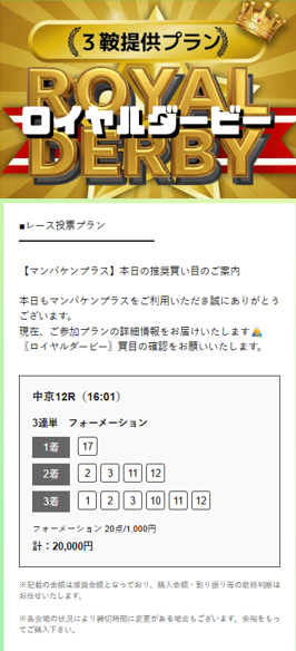 競馬予想サイト使うからにはこれくらいを毎回貰いたいところですね。