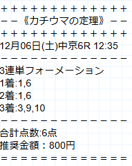 万馬券51,610円的中で41万2880円払い戻し。