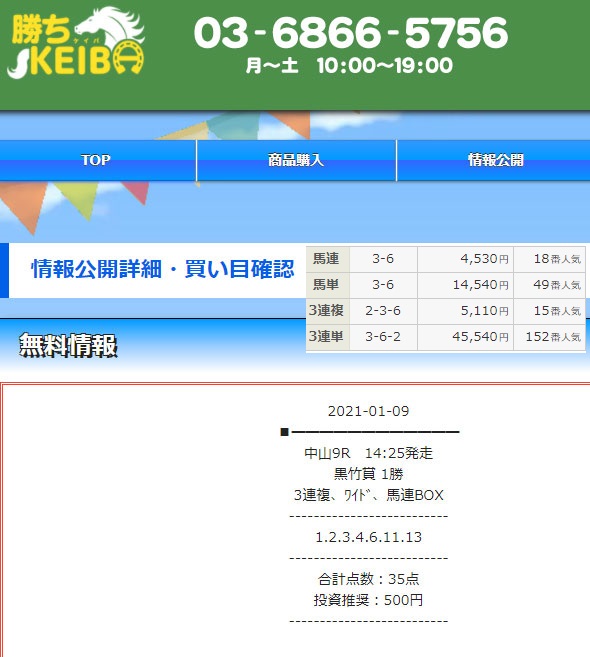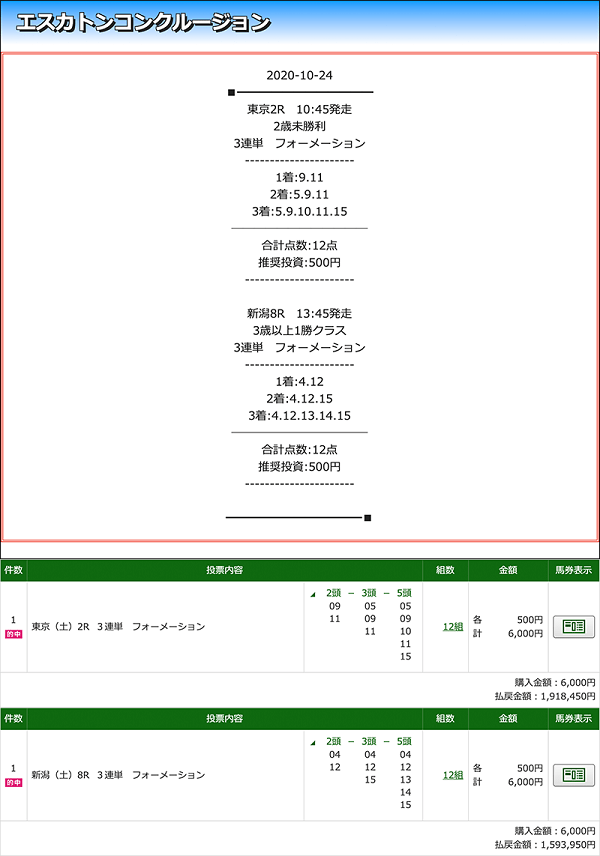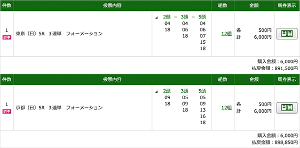 2つ目、勝ちKEIBAから届いた馬券を購入