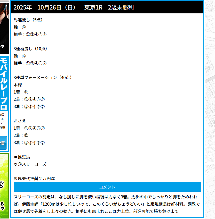 配当狙って3連単1点狙いで無料予想使って正解でしたわ!